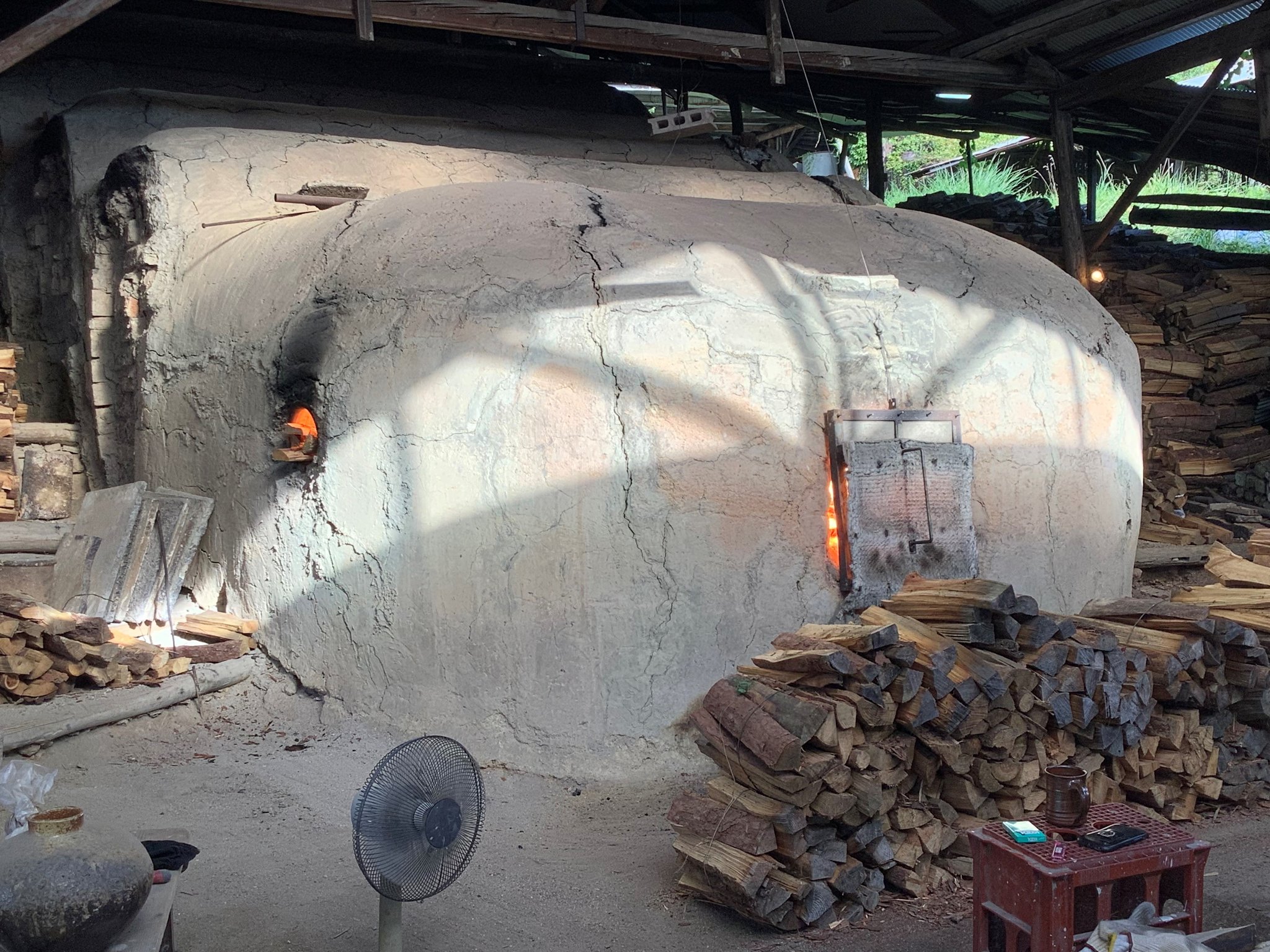 9月2日からバーナーによる炙り、3日から薪による焼成が始まりました。